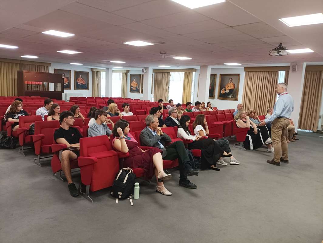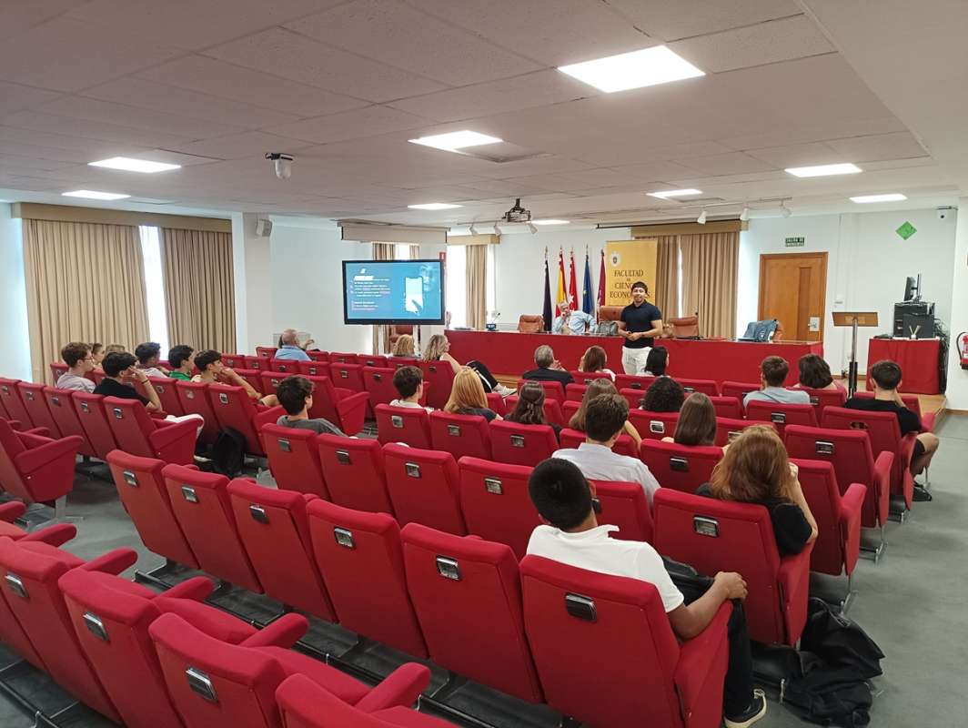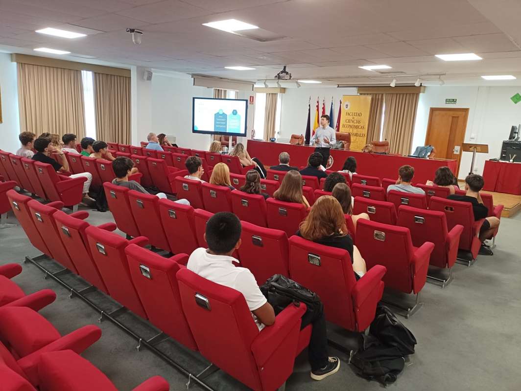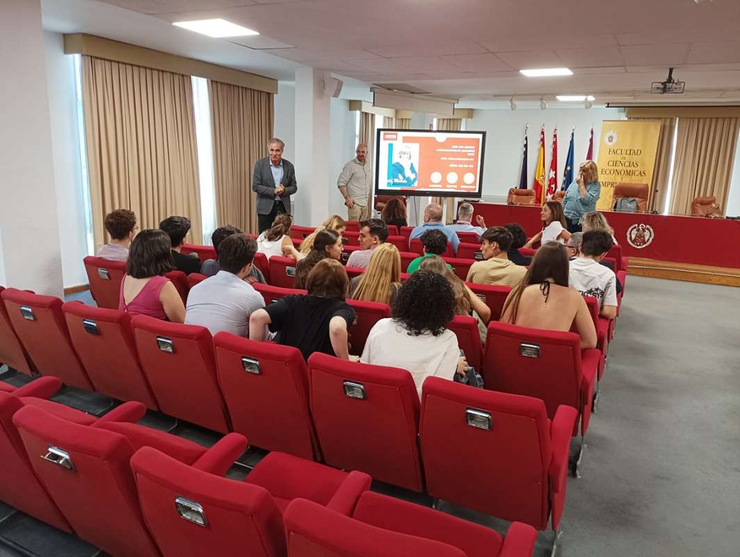 El evento tugo lugar el pasado 16 de septiembre en el Salón de Grados de la facultad, con el objetivo de presentar la convocatoria abierta de la Preincubadora Empresarial del curso 2025-2026. Así lo hizo el co-director de la Preincubadora, Jesús García de Madariaga, al comienzo del acto, dejando paso después al pitch de tres proyectos que se encuentran actualmente inscritos en este espacio. Ellos, después de haber expuesto su producto unos días antes en una sesión práctica con el resto de proyectos de la Preincubadora, hicieron lo propio ante las decenas de jóvenes estudiantes (futuros emprendedores) que asistieron al evento.